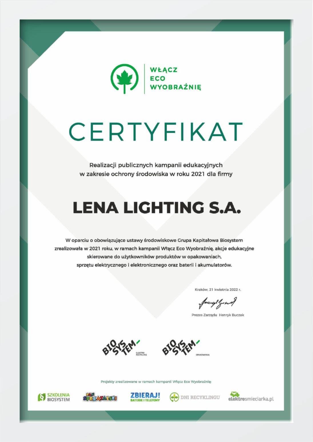 The natural environment and pro-environmental activities are issues that are very close to us. We strive for sustainability of our supply chain and the production processes of our luminaires. We are also happy to join the initiatives of Polish organisations and companies, such as educational campaigns in the field of environmental protection carried out annually by the  “Biosystem” Design and Implementation Company for Environmental Protection and Water Melioration in Cracow.
