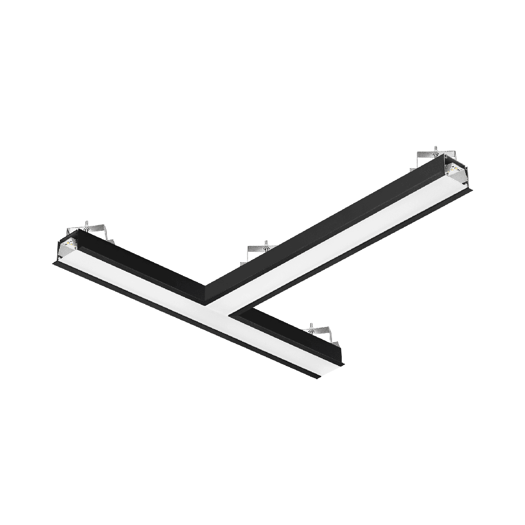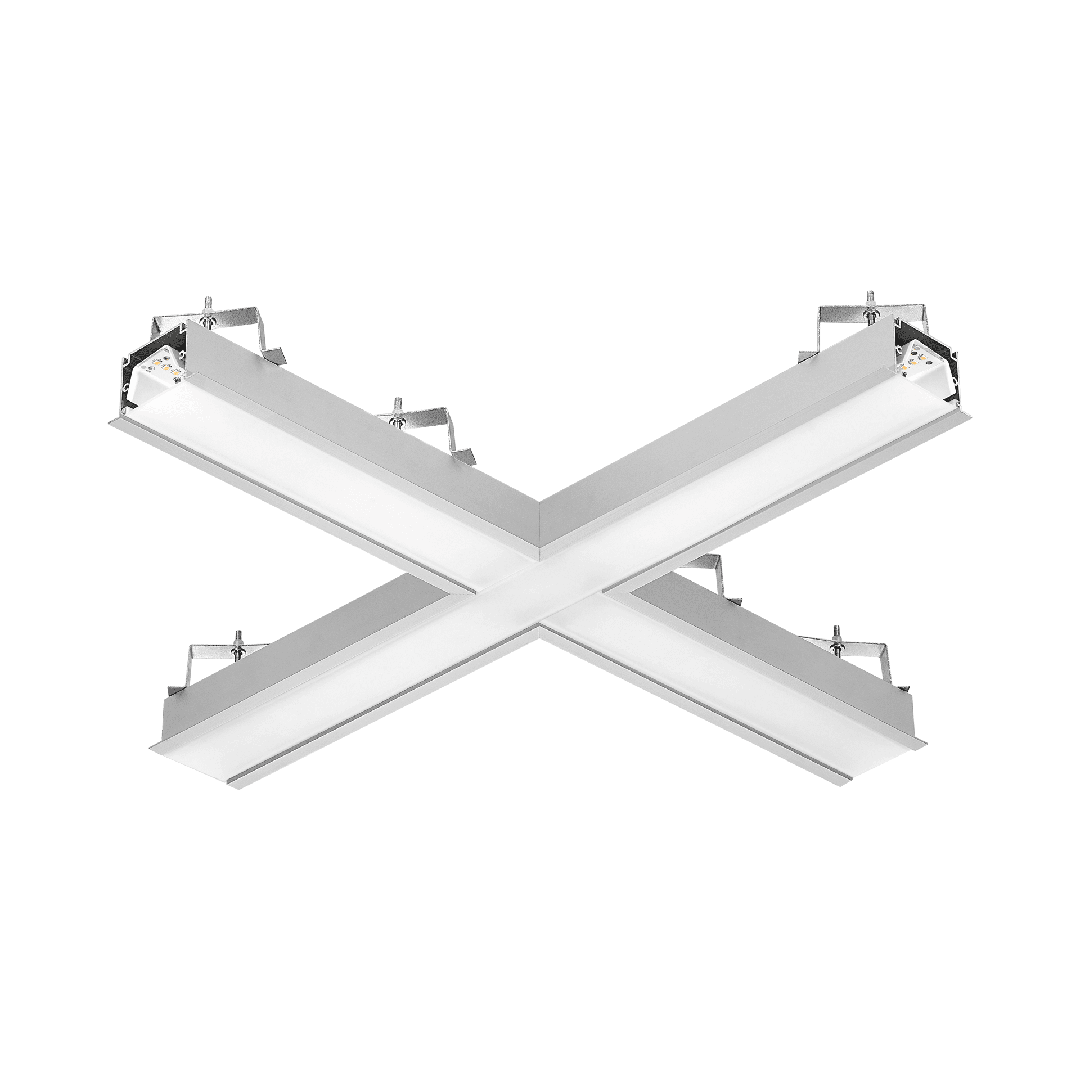 CHARACTERISTICS The key feature of L, T, X connectors is that they are equipped with integrated electronics and a diffuser, thanks to which the profile route bends remain illuminated along the entire length. Body is made of anodized aluminium profile in grey or aluminium profile painted white or black (other colors available on request). The optical system is complemented by a dedicated, flexible opal cover that evenly illuminates the connector. There is no division into surface mounted and suspended versions, which make the solution more universal. Connectors (T, X, L) are supplied with an OPAL diffuser. Connectors T, X, L UGR, and PRM diffusers are available on request
