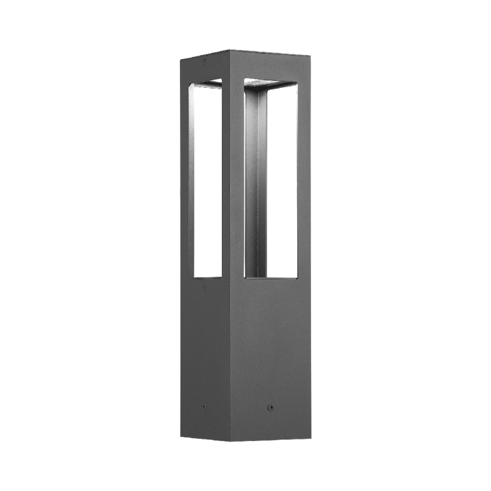 Outdoor lamp for car park and garden lighting with a 120x120mm cross-section, low version.