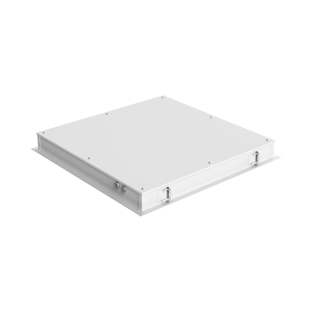 Lumedic SW R this is a specialist cleanroom luminaire designed for cleanrooms with an air cleanliness class of ISO 3–9, in accordance with ISO 14644-1:2015 Cleanroom, and meeting stringent hygiene and sterility requirements. Its design ensures ease of cleaning and high mechanical and environmental resistance. A robust steel housing with IP65 protection on the room side and on the technical side ensures complete tightness in a sterile environment, while allowing free air flow above the suspended ceiling. Service access is provided from the technical side (top inspection), allowing maintenance without interfering with the clean room.