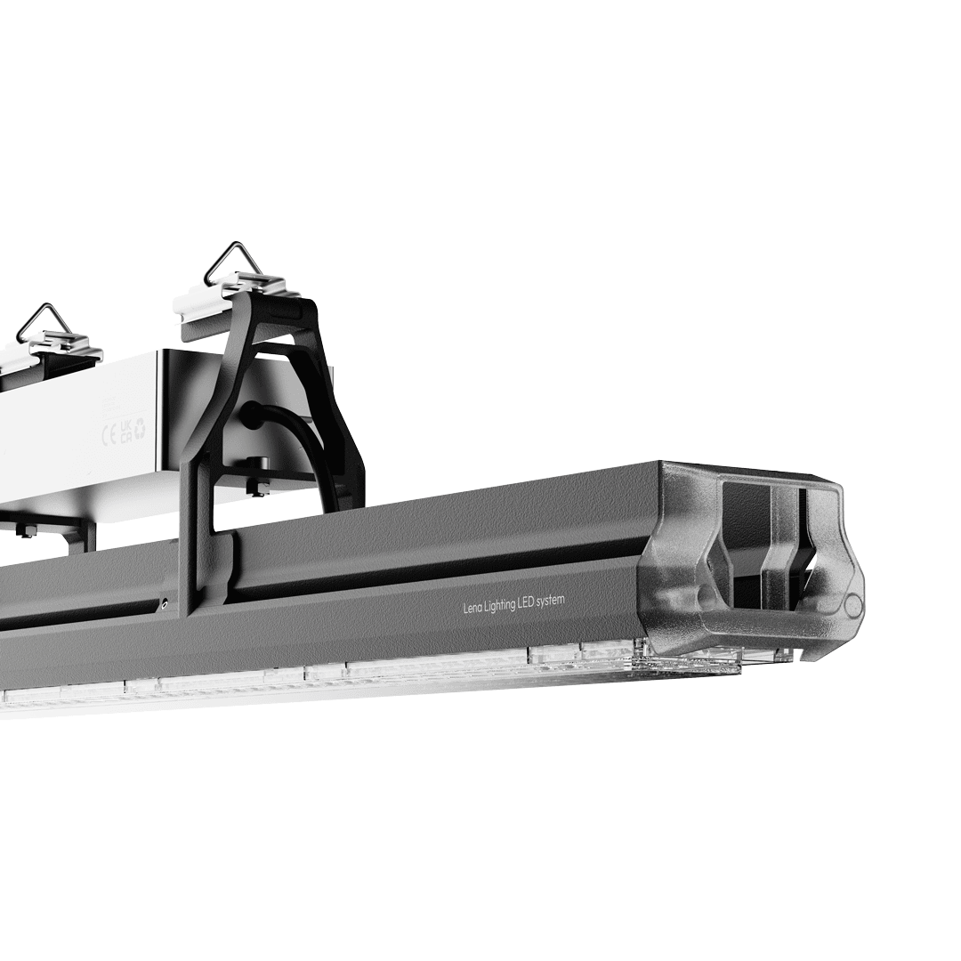 A family of lightweight, linear, high-bay, hermetic luminaires made of extruded aluminium, with a heat sink to dissipate excess heat and a separate compartment for the power supply. It combines durability and tightness with maximum light efficiency. Its uncompromising, modern design represents a breakthrough in the design of efficient and economical industrial luminaires. The modular construction allows for maximum light output at low cost and size. Professional optics made of durable polycarbonate (PC) provide great freedom in choosing the optimal solution, even at significant mounting heights.