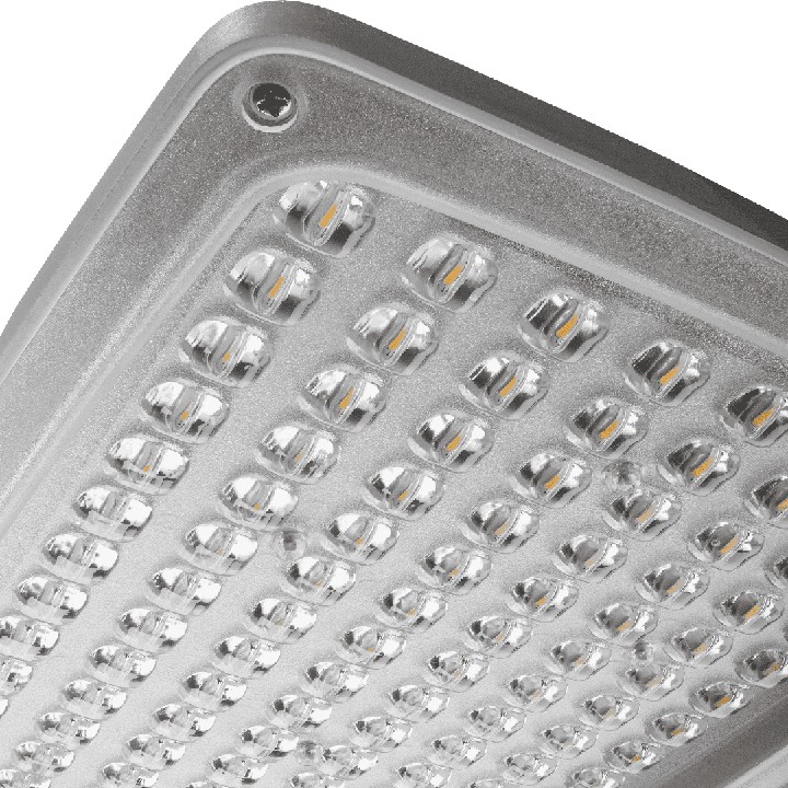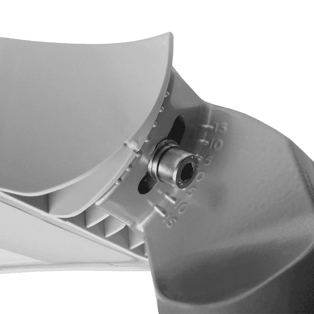 Streetlight LED fitting with high luminous flux (max 153 lm/W) and an integrated energy-saving LED module. The self-cleaning body is made of polypropylene (PP) with fiberglass (GF) and the grip is made of aluminium. Thanks to the directional lens (made of PC), the light distribution meets the requirements of PN–EN 13201 lighting class. IP66 ingress protection class and IK08 impact-rating features make this fitting extremely tight and shock-resistant (vandal-resistant). Integrated, step-regulated grip allows to set the fitting by 5 degrees in the range of -5° to +15° (peak to pole); -15° to +5° (side to boom). Options: any RAL color. Luminaires in protection class II may only be mounted on a metal pole. RCR sensor controlled by remote control.