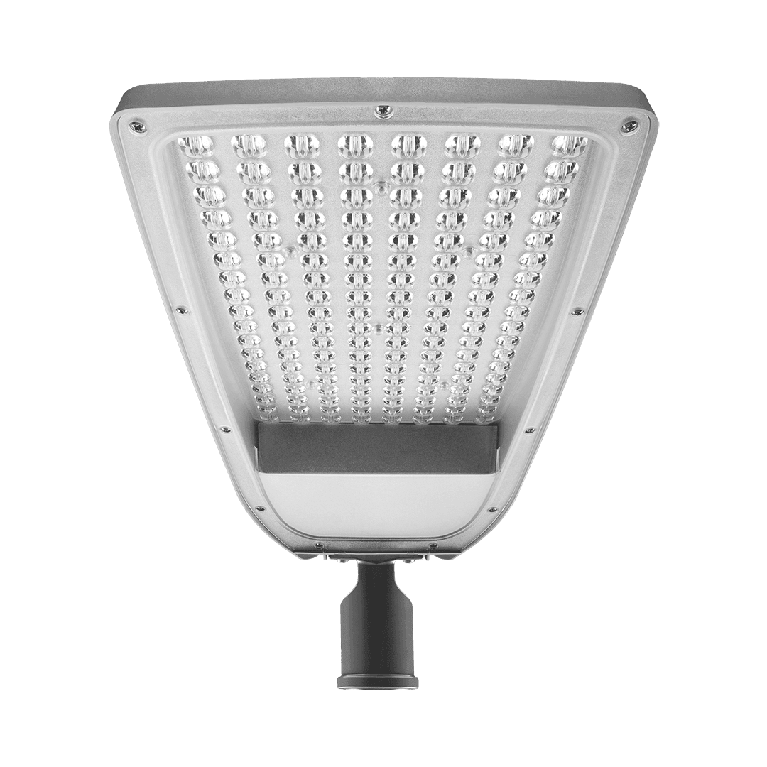LED road luminaire with high luminous efficacy (up to 151 lm/W) and energy-efficient integrated LED module. Self-cleaning body and handle made of powder-coated aluminium. The luminaire uses directional lens matrices (made of polycarbonate PC). The luminaire is characterised by a high degree of protection IP66 and mechanical impact resistance IK08 (vandal resistant). The integrated bracket, adjustable in increments of 5 degrees, allows adjustment from: -5° to +15° (top, on pole); -15° to +5° (side, on boom). Constructed as standard with 0.7m of H07RN-F cable with IP66 quick-connector. Additional options: painting in any RAL colour; RCR sensor controlled by remote control. Certifications: CE, RoHS, ENEC.