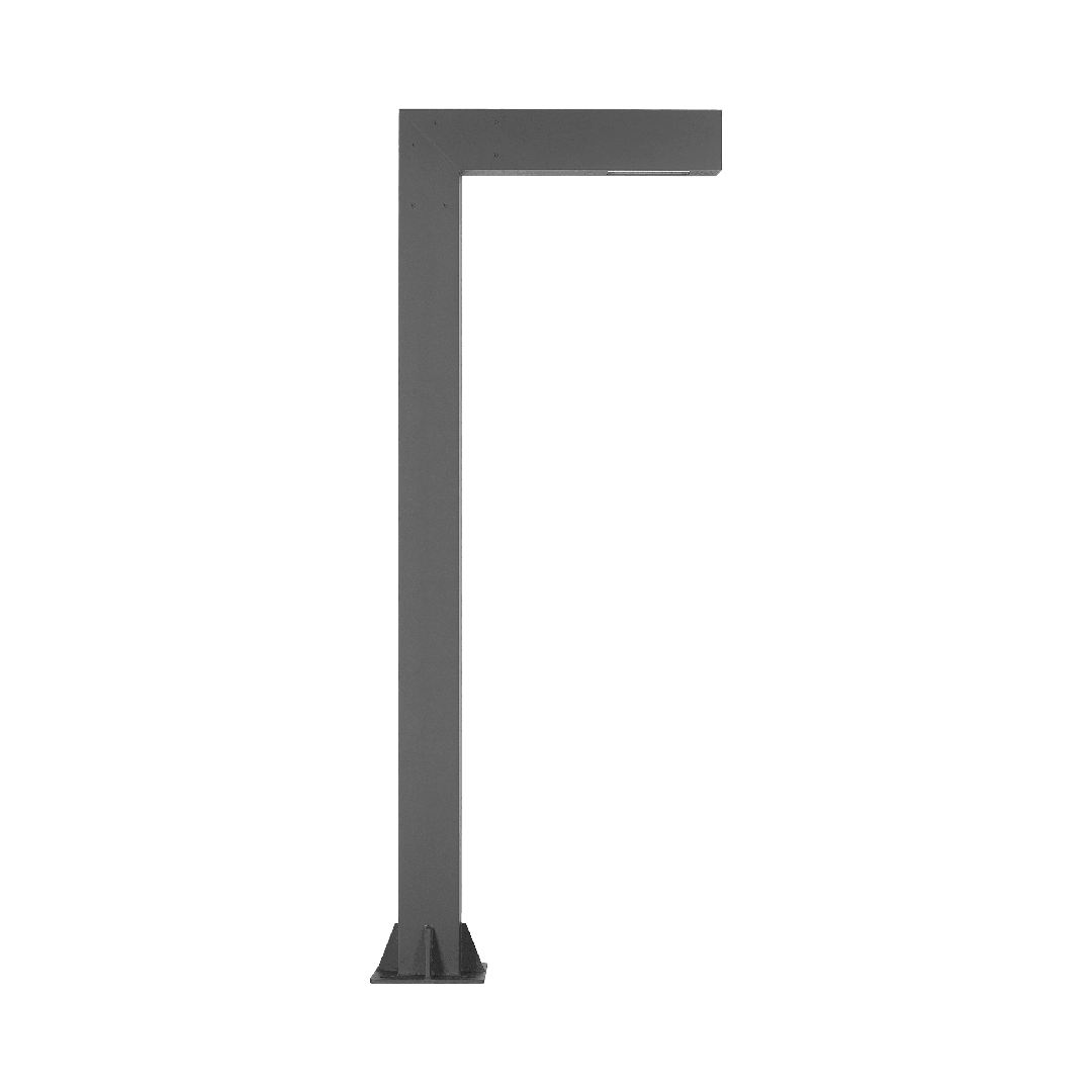 Altezzo L 150 is a family of outdoor lamps with a modern design. We offer them in five dimensions - with heights ranging from 2500 mm to 5000 mm. Their design provides for customization of the lamp according to the guidelines of the designer or architect. The lamp element containing the light module can be oriented parallel to the illuminated plane. In addition, the profile itself can bifurcate. As a result, as many as four light module elements can be mounted on a single post - one on each plane of the post - at the same or different heights.